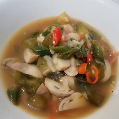 Buat yg suka asem pedes wajib cobain resep ini. Tambahkan potongan wortel jamur merang dan kapri. Jika dirasa jamur sudah agak layu tambahkan irisan daun bawang gula garam dan kecap.